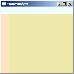 <Window x:Class="Conatainers.MainWindow" xmlns="http://schemas.microsoft.com/winfx/2006/xaml/presentation" xmlns:x="http://schemas.microsoft.com/winfx/2006/xaml" Title="MainWindow" Height="250" Width="250"> <DockPanel> <StackPanel Height="25" Background="Azure" DockPanel.Dock="Top"></StackPanel> <StackPanel Width="25" Background="Bisque" DockPanel.Dock="Left"></StackPanel> <StackPanel Background="PaleGoldenrod"></StackPanel> </DockPanel> </Window>
