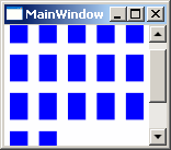<Window x:Class="Conatainers.MainWindow" xmlns="http://schemas.microsoft.com/winfx/2006/xaml/presentation" xmlns:x="http://schemas.microsoft.com/winfx/2006/xaml" Title="MainWindow" Height="250" Width="250"> <ScrollViewer> <UniformGrid> <Rectangle Fill="Blue" Width="25" Height="25" Margin="5"/> <Rectangle Fill="Blue" Width="25" Height="25" Margin="5"/> <Rectangle Fill="Blue" Width="25" Height="25" Margin="5"/> <Rectangle Fill="Blue" Width="25" Height="25" Margin="5"/> <Rectangle Fill="Blue" Width="25" Height="25" Margin="5"/> <Rectangle Fill="Blue" Width="25" Height="25" Margin="5"/> <Rectangle Fill="Blue" Width="25" Height="25" Margin="5"/> <Rectangle Fill="Blue" Width="25" Height="25" Margin="5"/> <Rectangle Fill="Blue" Width="25" Height="25" Margin="5"/> <Rectangle Fill="Blue" Width="25" Height="25" Margin="5"/> <Rectangle Fill="Blue" Width="25" Height="25" Margin="5"/> <Rectangle Fill="Blue" Width="25" Height="25" Margin="5"/> <Rectangle Fill="Blue" Width="25" Height="25" Margin="5"/> <Rectangle Fill="Blue" Width="25" Height="25" Margin="5"/> <Rectangle Fill="Blue" Width="25" Height="25" Margin="5"/> <Rectangle Fill="Blue" Width="25" Height="25" Margin="5"/> <Rectangle Fill="Blue" Width="25" Height="25" Margin="5"/> </UniformGrid> </ScrollViewer> </Window>