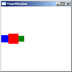 <Window x:Class="Conatainers.MainWindow" xmlns="http://schemas.microsoft.com/winfx/2006/xaml/presentation" xmlns:x="http://schemas.microsoft.com/winfx/2006/xaml" Title="MainWindow" Height="250" Width="250"> <StackPanel Orientation="Horizontal"> <Rectangle Fill="Blue" Width="25" Height="25"/> <Rectangle Fill="Red" Width="35" Height="35"/> <Rectangle Fill="Green" Width="20" Height="20"/> </StackPanel> </Window>
